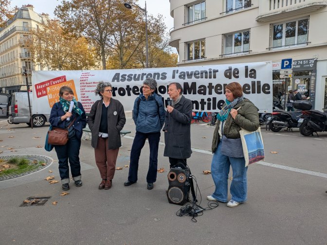 Autour de l’anniversaire des 80 ans de la PMI, et à l’invitation de la plate-forme "Assurer l’avenir de la PMI", des centaines de professionnel.les de PMI se sont adressé.es au premier ministre Monsieur Lecornu et à la ministre de la santé, Madame Rist, les appelant à des mesures urgentes afin de revitaliser le dispositif de PMI et de santé sexuelle. Une cinquantaine se sont réuni.es devant le ministère de la santé mercredi 5 novembre pour appuyer cette mobilisation.
